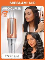 دستگاه کرلی مو اتوماتیک چرخشی شیگلم Sheglam سایز ۳۲mm و ۲۵mm یک دستگاه کرلر اتوماتیک با قابلیت چرخش و حرارت دادن مو همزمان است. این محصول جدید شیگلم با پوشش سرامیکی GlossPro و طراحی مناسب از هرگونه آسیب، گره خوردن، کشیده شدن، سوختگی، وز و موخوره موهای شما جلوگیری می کند و فرهای یکدست و منظمی به شما میدهد. یکی از ویژگیهای مهم این دستگاه فر کننده مو، حالتدهی سریع و آسان آن است. این دستگاه طراحی هوشمند دارد که، به شما این امکان را میدهد که تنها با انتخاب یک تکه از مو، آن را درون دستگاه قرار دهید و به سرعت فر کنید. این فرآیند بدون نیاز به مهارت خاصی انجام میشود و حتی افراد مبتدی نیز میتوانند به راحتی از آن استفاده کنند.